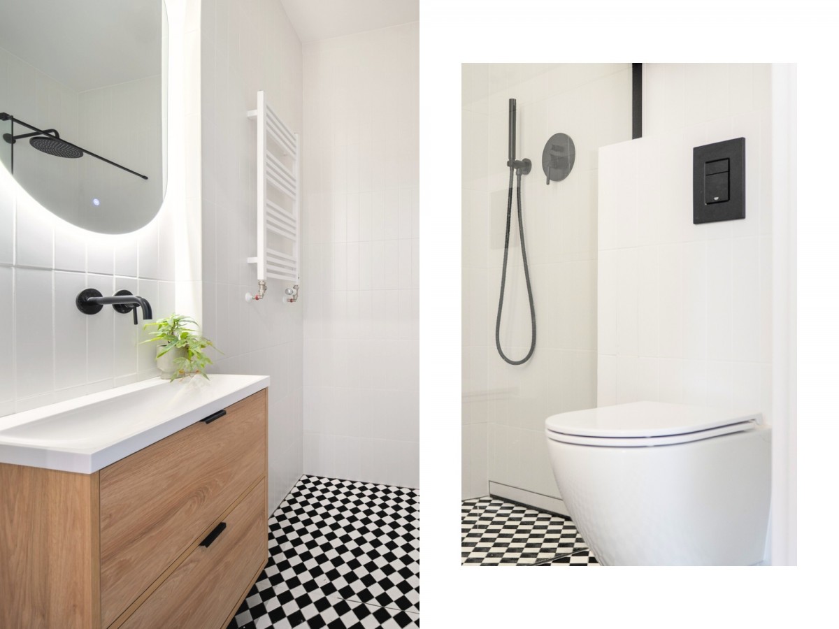 Już od wejścia uwagę zwraca elegancka zabudowa i jasna, spójna aranżacja. Salon z balkonem to przestrzeń do odpoczynku i spotkań, sypialnia z garderobą gwarantuje prywatność i porządek, a łazienka w stylu modern retro zachwyca detalami. Całość została wykonana w wysokim standardzie – m.in. z użyciem armatury Omnires.