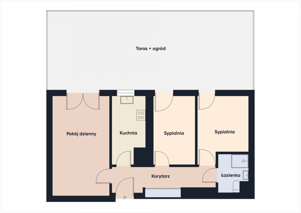 - duży taras (ok. 18 m²) i ogródek (ok. 30 m²) – razem prawie 50 m² prywatnej przestrzeni,