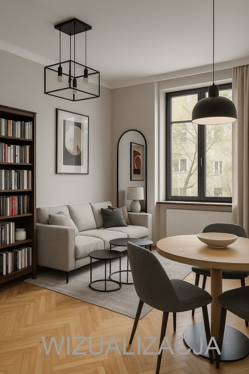 Salon: ok 20 m² – jasny, przestronny, z dużymi oknami