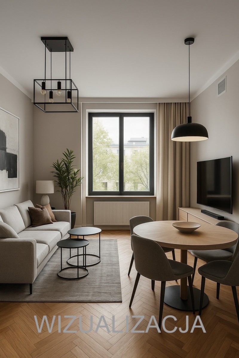 Mieszkanie jest po remoncie, zachowano w nim oryginalną, dębową klepkę – idealny kompromis między nowoczesnością a klasyką.