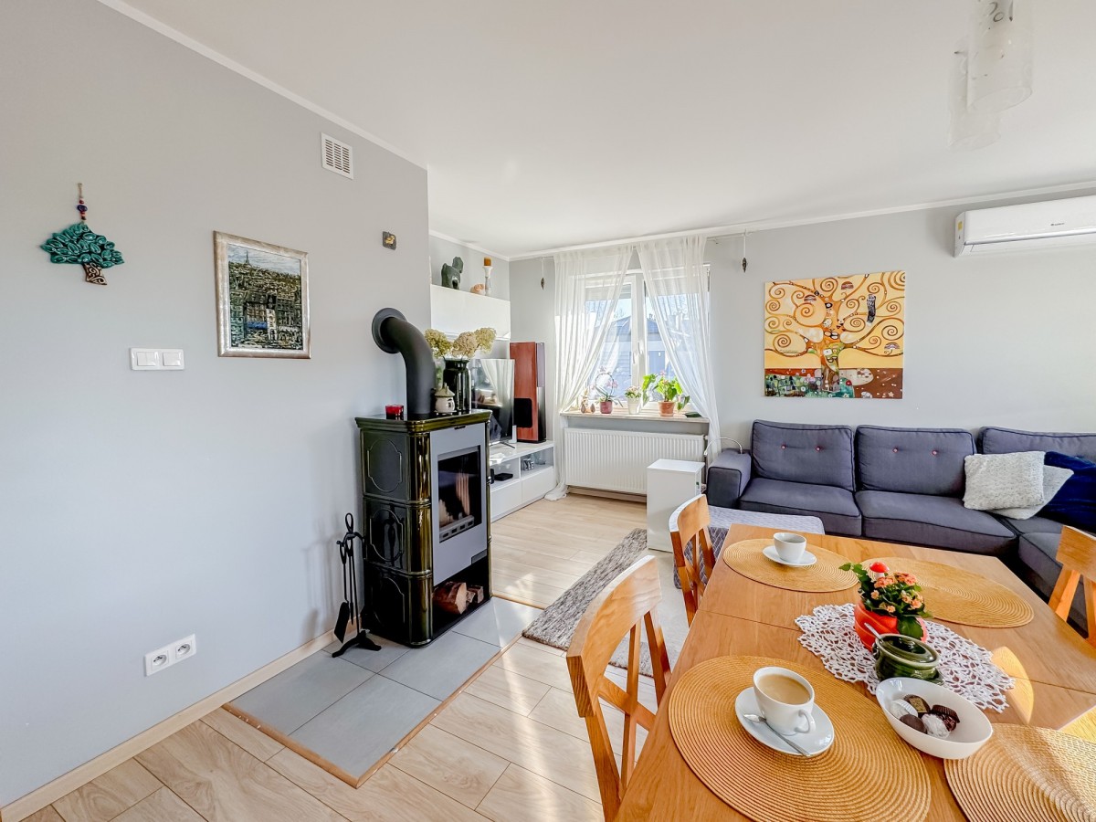 Mieszkanie ogrzewane jest za pomocą pieca gazowego, ponadto w salonie znajdziemy kominek w typie „kozy”, który oprócz dodania uroku w mroźne zimowe dni, może wspomóc system ogrzewania. W nieruchomości znajdziemy mnóstwo udogodnień tj. własne ujęcie wody, klimatyzację na dwóch poziomach czy zewnętrzne rolety antywłamaniowe.