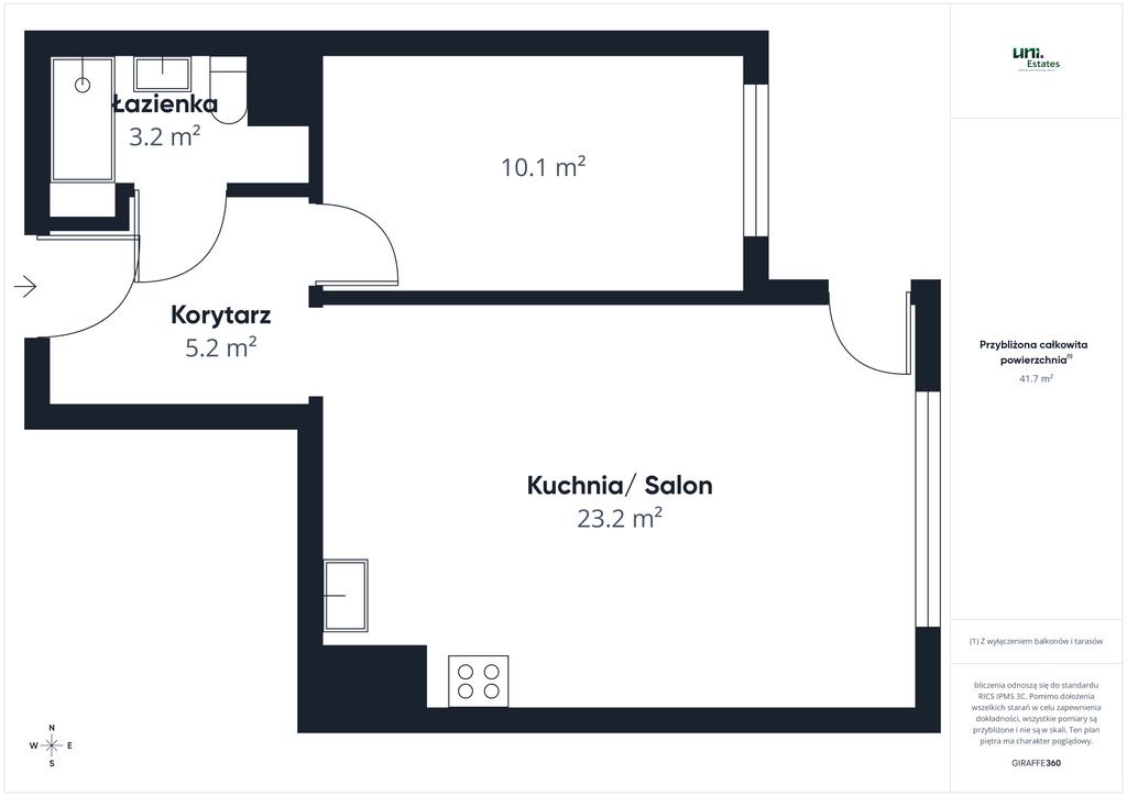 • salon z aneksem kuchennym (ok. 18,5 m²)