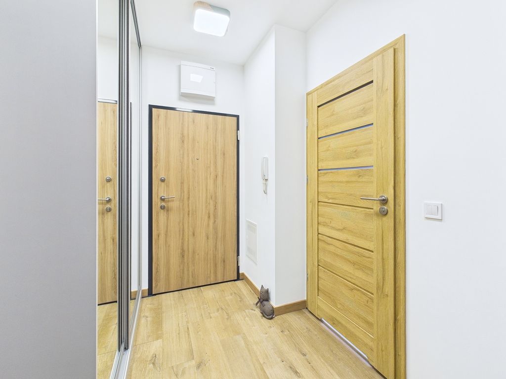 • przedpokój z dużą szafą w zabudowie