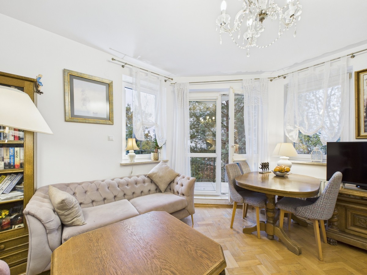Osiedle jest zamknięte i kameralne, otoczone zielenią, dzięki czemu panuje tu cisza i poczucie prywatności. Mieszkanie jest jasne i słoneczne, z widokiem na tereny zielone. Lokal wymaga jedynie drobnego odświeżenia, ale jest gotowy do zamieszkania od zaraz.