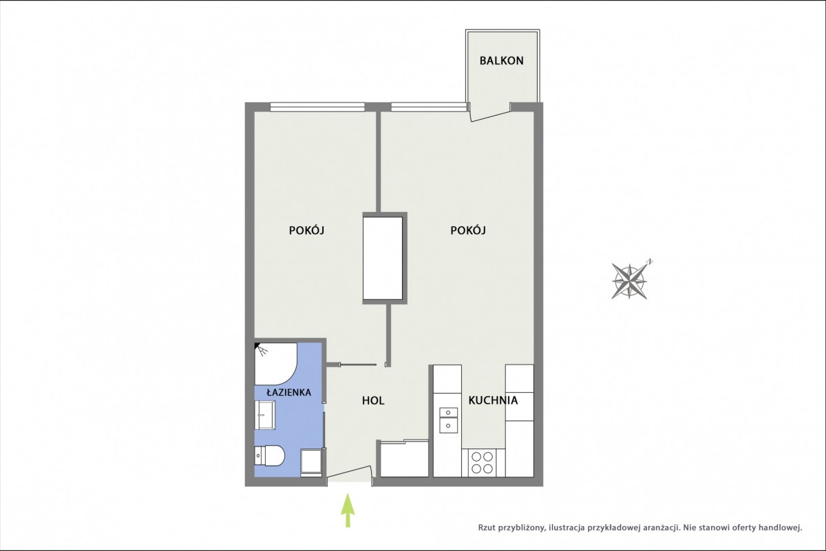 W mieszkaniu o powierzchni 37,1 m² znajdują się: