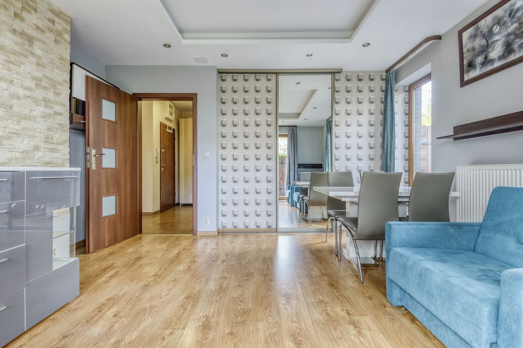 Mieszkanie usytuowane na parterze w bloku z windą, na strzeżonym i zadbanym osiedlu w Ząbkach.