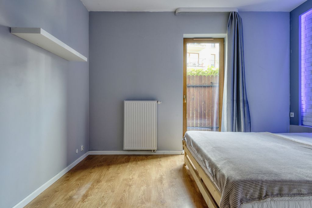 -przytulna sypialnia z miejscem na dużą szafę.