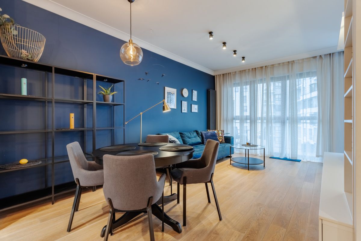 Mieszkanie o łącznej powierzchni użytkowej 46,19 m² zostało zaprojektowane przez architekta i do dziś stanowi wizytówkę osoby projektującej to wnętrze.