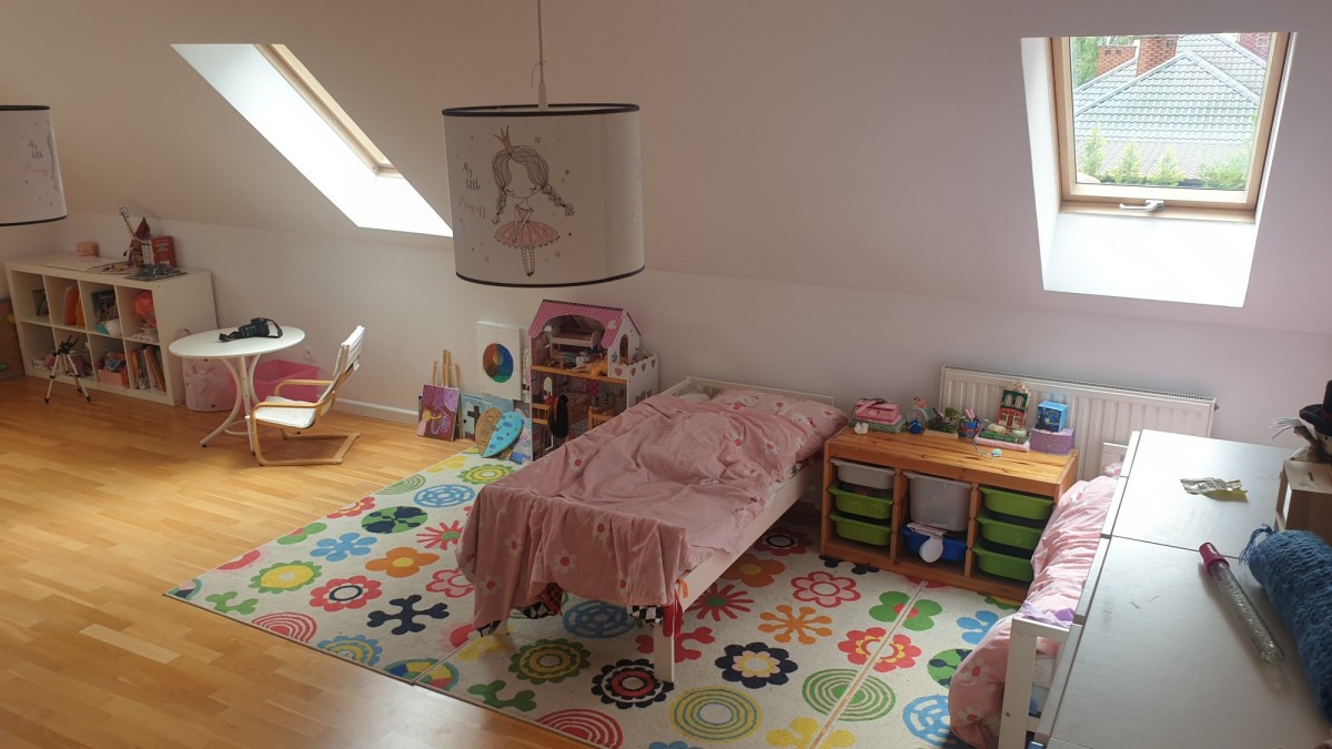 - duży pokój dziecięcy 46 m² (z możliwością ponownego podziału na dwa pokoje)