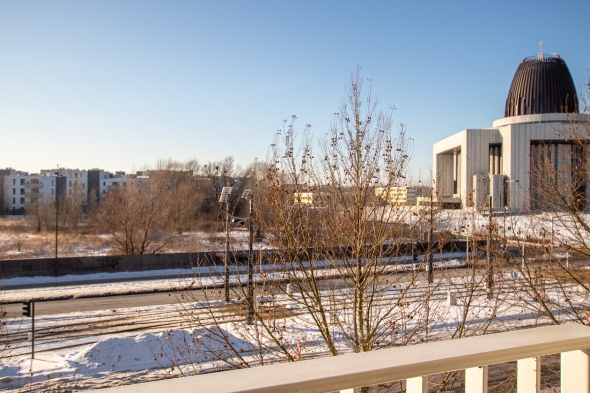 Mieszkanie położone jest przy ul. Rzeczypospolitej, w jednej z najlepiej skomunikowanych części Miasteczka Wilanów. W bezpośrednim sąsiedztwie znajdują się liczne sklepy, restauracje, kawiarnie, punkty usługowe, placówki edukacyjne oraz tereny rekreacyjne i ścieżki spacerowe. Tuż pod budynkiem zlokalizowane są przystanki tramwajowe, zapewniające szybki i wygodny dojazd do centrum Warszawy oraz innych dzielnic, a dodatkowe linie autobusowe gwarantują pełną swobodę komunikacyjną bez konieczności korzystania z samochodu.