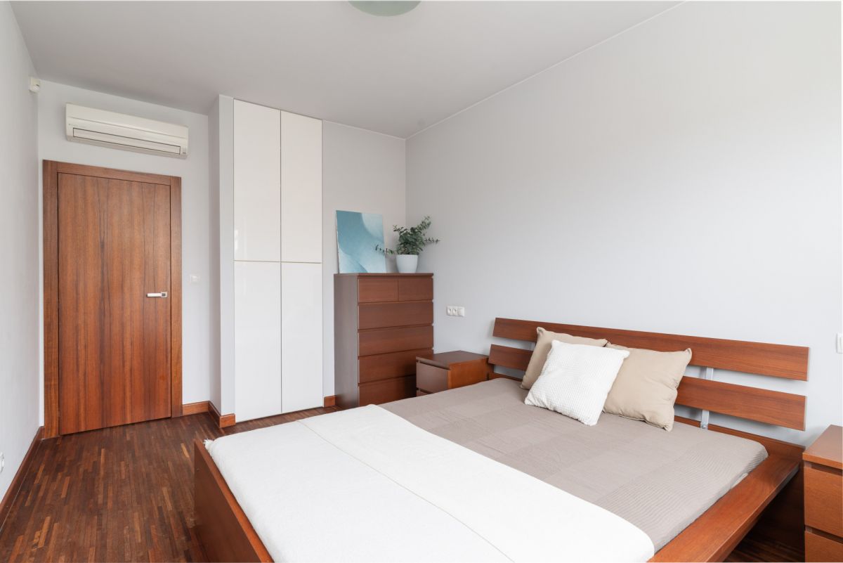 The apartment is situated in a peaceful, green part of the city while still offering quick access to the infrastructure of Miasteczko Wilanów and central Warsaw.