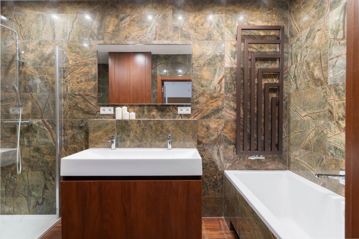 W mieszkaniu zastosowano naturalne, wysokiej jakości materiały: