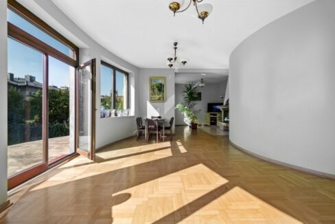 To mieszkanie zostało zaprojektowane z myślą o najwyższym komforcie. Mamy tu duży, jasny salon z wyjściem prosto na prywatny taras i ogródek — idealne miejsce na poranną kawę i wieczorne grillowanie. Całości dopełniają dwie ustawne sypialnie. Duża, funkcjonalna kuchnia jest otwarta na salon, co sprzyja wspólnemu spędzaniu czasu. Wysokość pomieszczeń wynosząca 280 cm dodaje wnętrzom przestronności i poczucia luksusu.