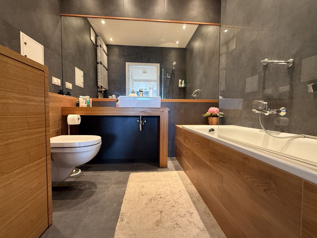 – Nowoczesna, w pełni wyposażona kuchnia (zmywarka, piekarnik, płyta indukcyjna, lodówka),