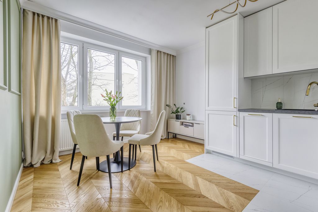 - Salon z aneksem kuchennym – jasna i komfortowa przestrzeń dzienna
