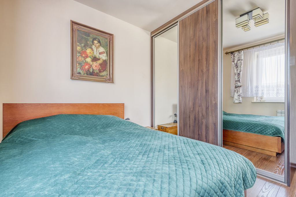 -przytulna sypialnia z dużą szafą z oknem na stronę północną,