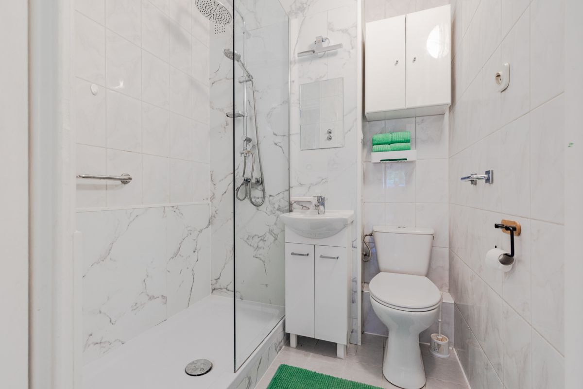 Łazienka była gruntownie odświeżona 3 lata temu, została wymieniona wanna na prysznic wygodny dla osób z niepełnosprawnością ruchową lub starszych wymagających pomocy.
