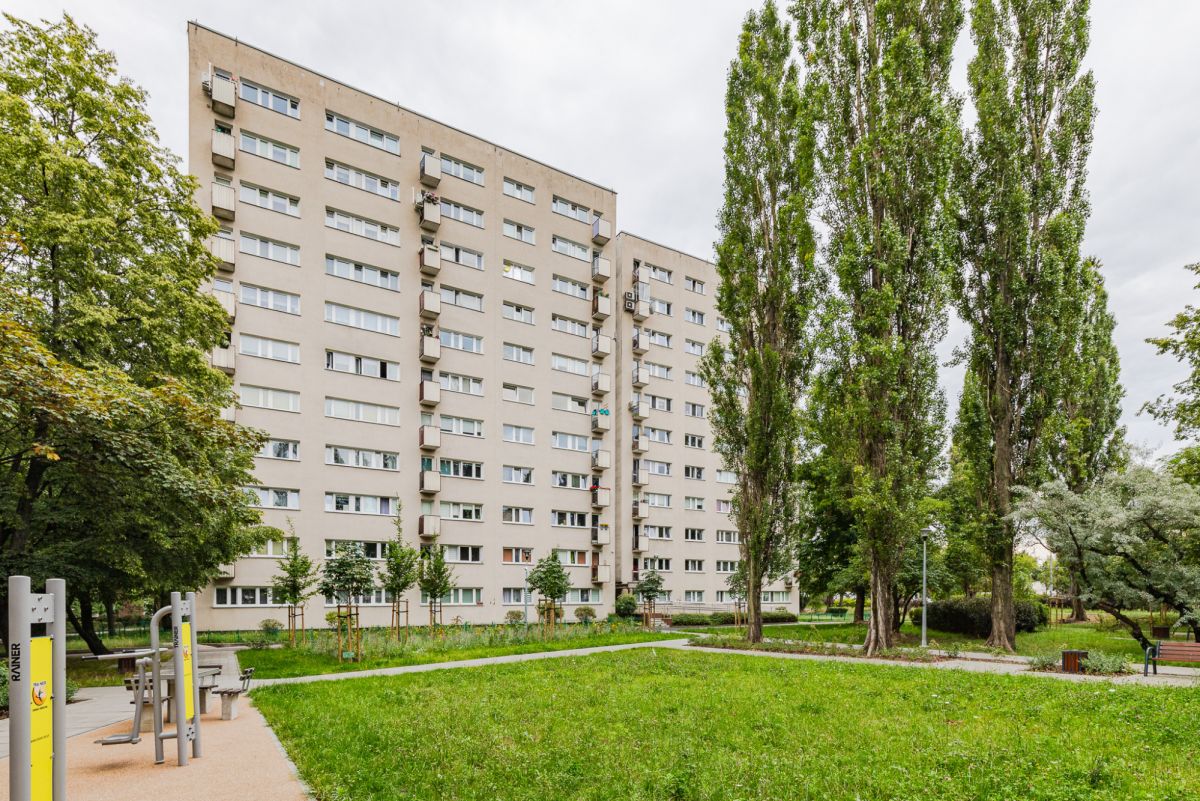 Budynek 10 piętrowy z początków lat 70′ zlokalizowany na Bielanach w cichej i zielonej okolicy przy ul. Starej Baśni 5. Elewacja docieplona, klatki schodowe wyremontowane, dwie cichobieżne windy. Duże odległości między budynkami, zadbana zieleń z ławeczkami do siedzenia oraz placami zabaw dla dzieci i siłownią plenerową sprawiają, że mieszka się tutaj naprawdę dobrze.