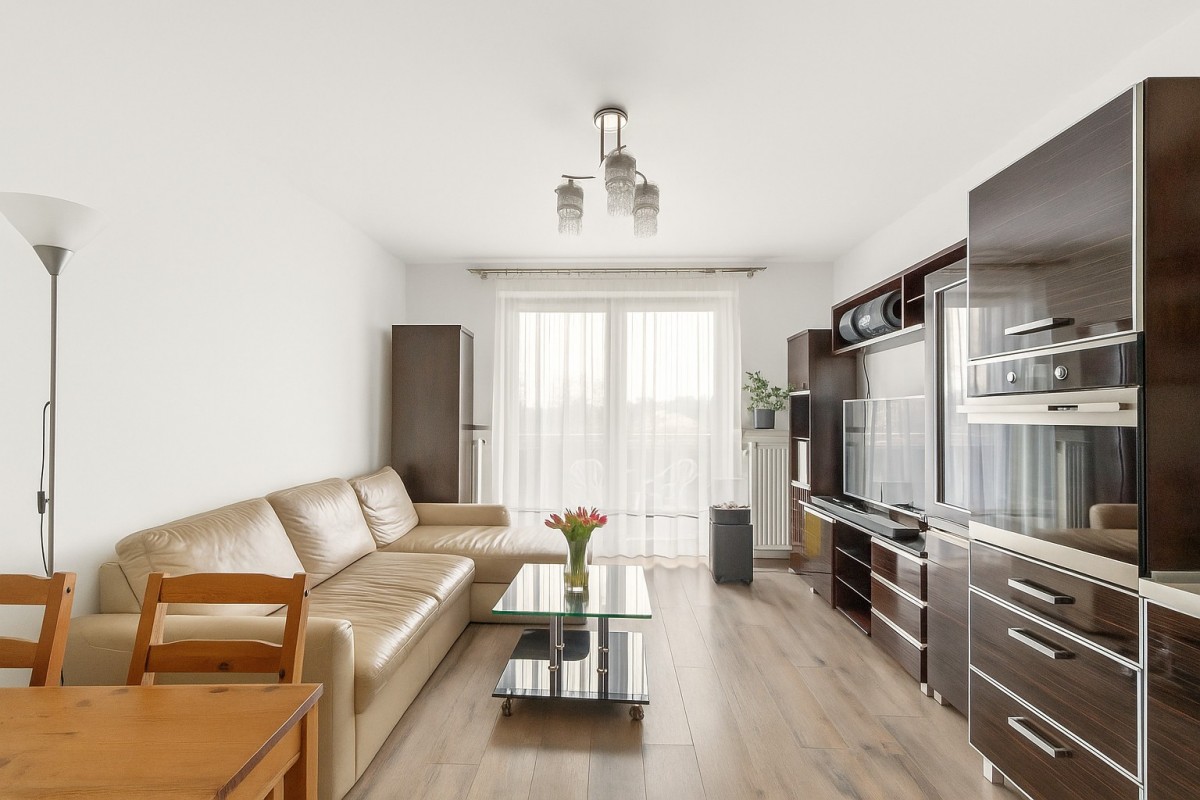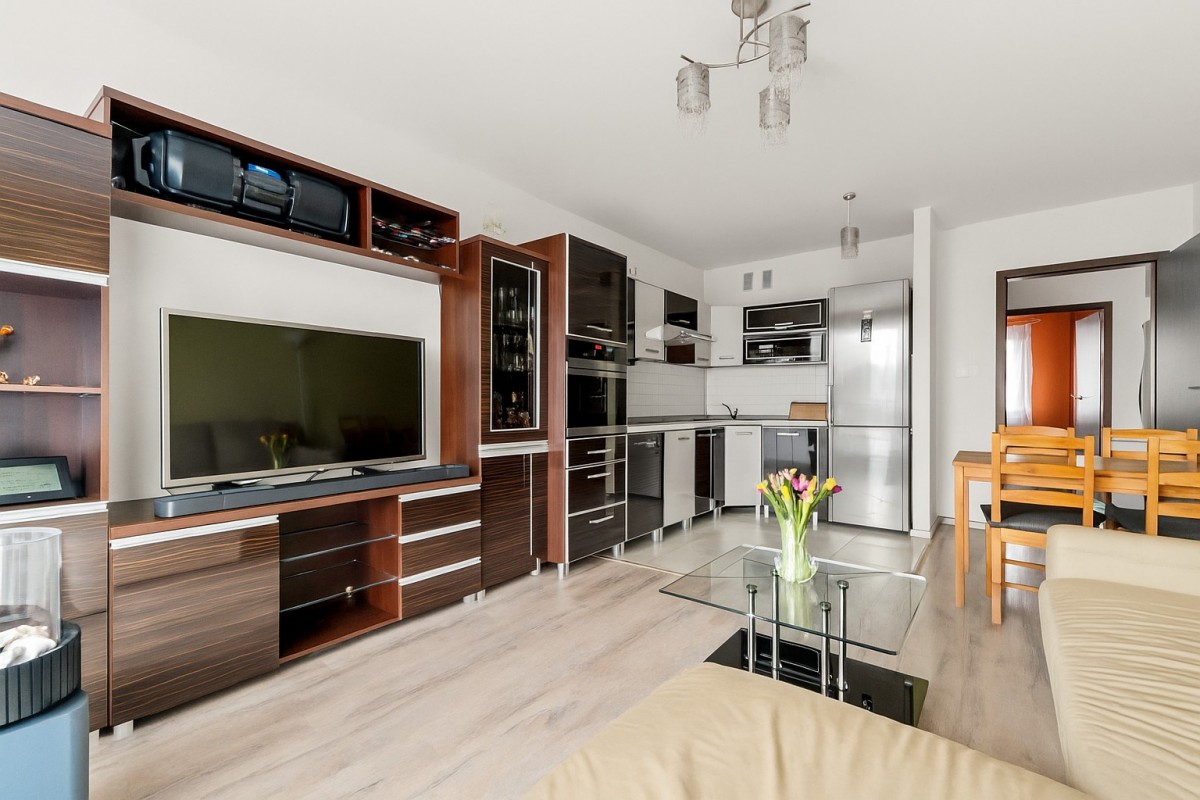 The apartment is double-sided, which guarantees optimal sunlight throughout the day. The view from the living room extends to the greenery rather than the neighbors, which provides privacy and silence. Such a location is a great asset, distinguishing this building from the rest, offering residents contact with nature and peace in an urban environment. In addition, thanks to this location, the apartment is an ideal place to rest after an intense day, giving a feeling of relaxation and comfort.