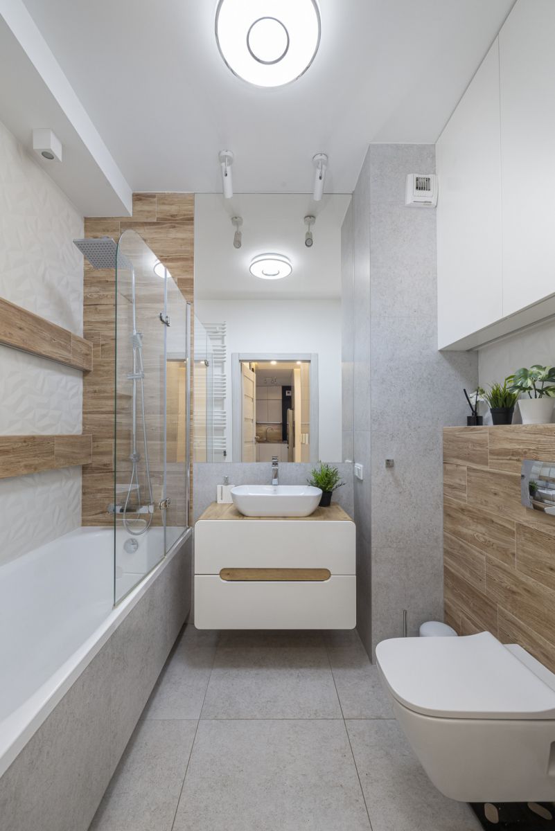 – łazienka (3,9m2) wyposażona w wannę z prysznicem,