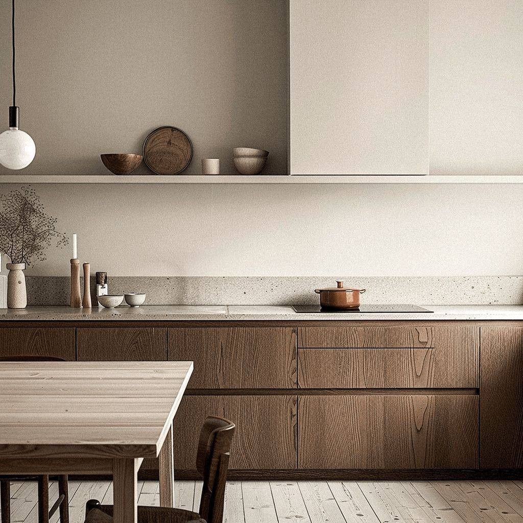 a spacious living room with space for a kitchen,