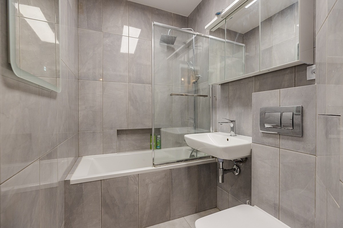 - Łazienka z wanną i funkcją prysznica łączy wygodę relaksu z praktycznymi rozwiązaniami.