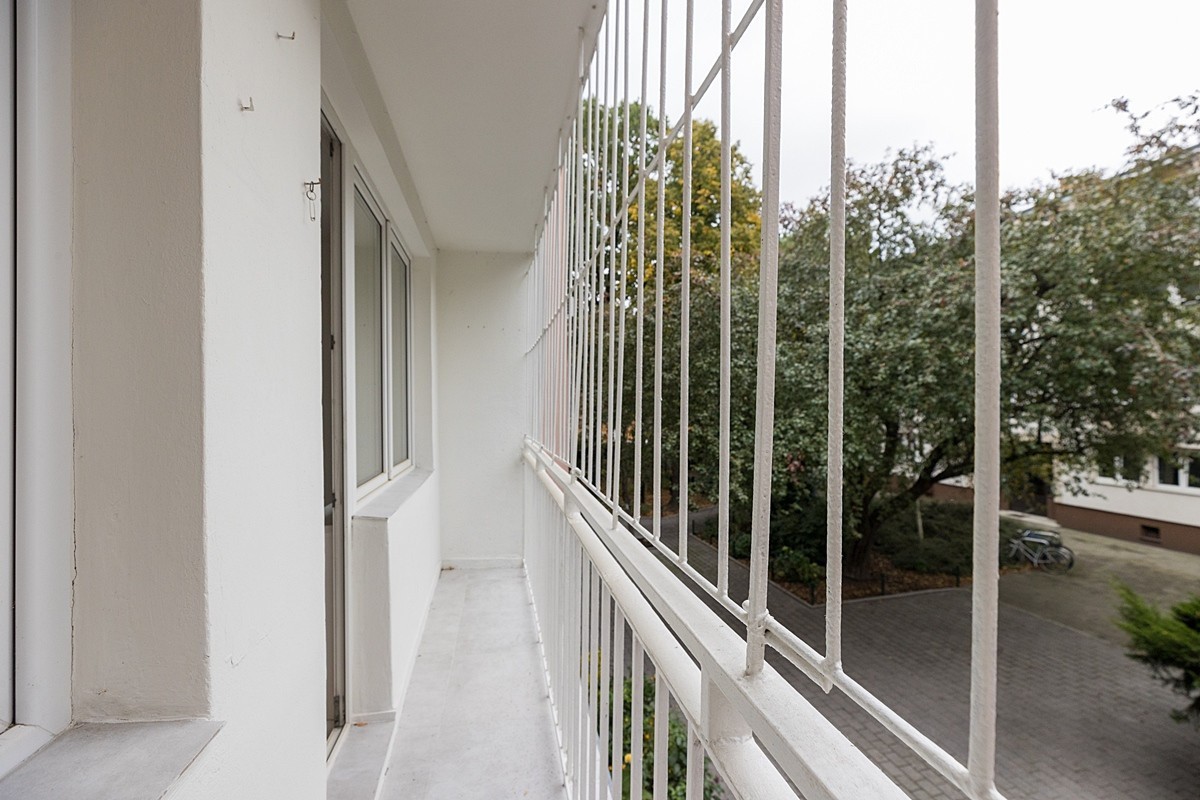 Mieszkanie o powierzchni 58 m² znajduje się na pierwszym piętrze kameralnego, trzypiętrowego budynku z 1963 roku. Przestrzeń została zaprojektowana z myślą o wygodzie i funkcjonalności:
