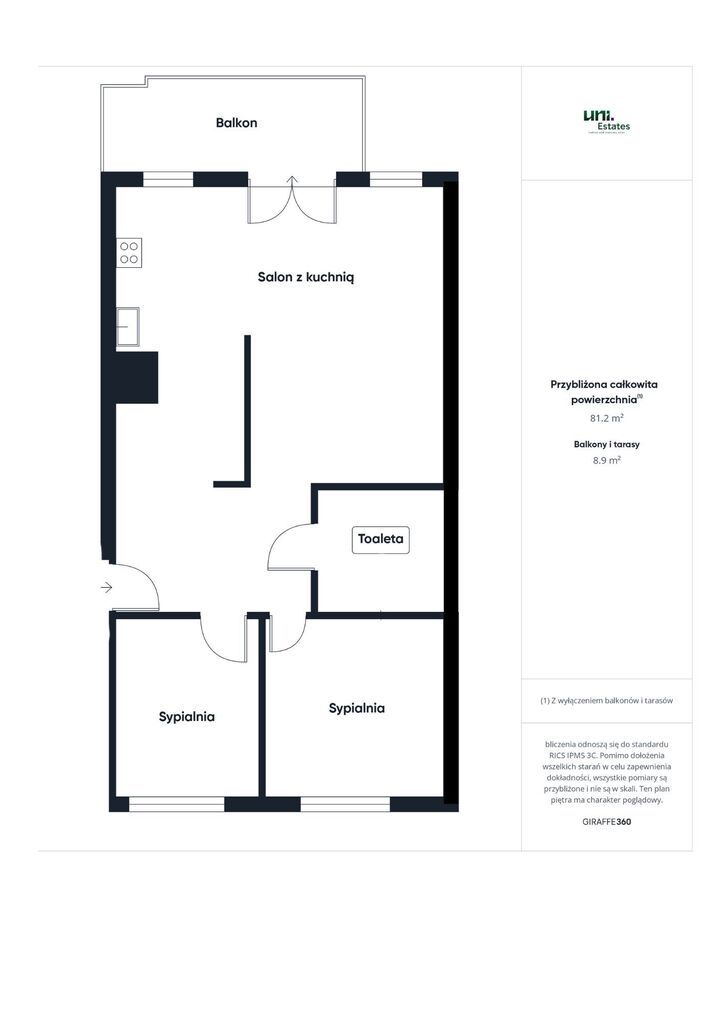 - przestronny salon z aneksem kuchennym i wyjściem na balkon,