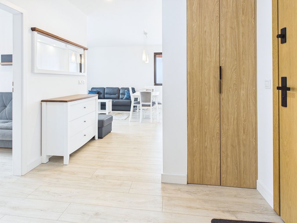 - Przedpokój: z funkcjonalnymi szafami w zabudowie, gwarantującymi dużo miejsca do przechowywania.