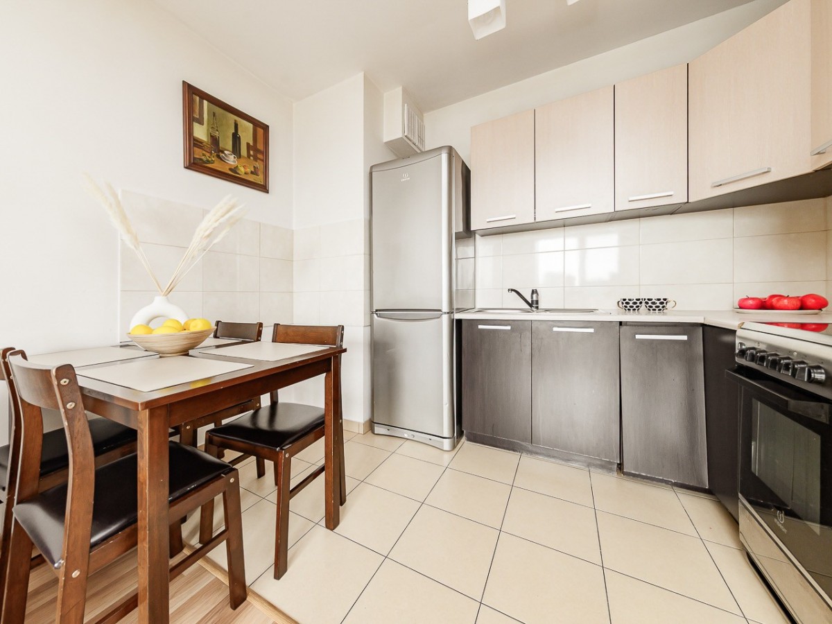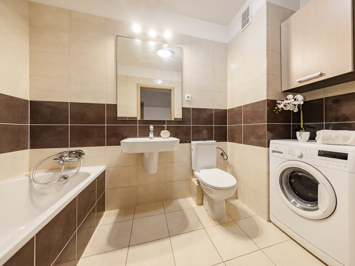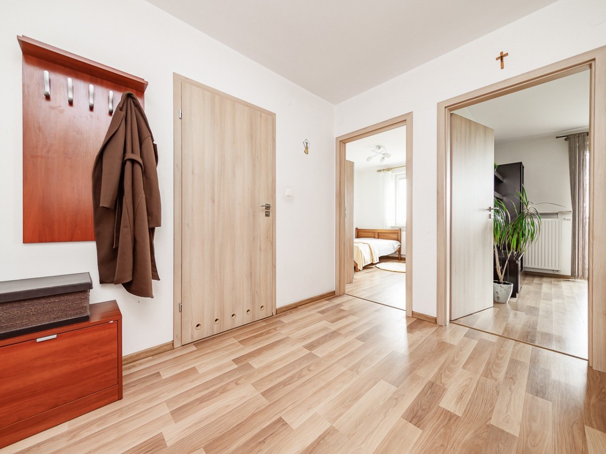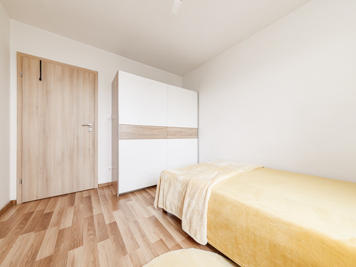 Mieszkanie jest jasne i ciepłe, dodatkowym atutem jest balkon z widokiem na zieleń zapewniający prywatność i spokój.