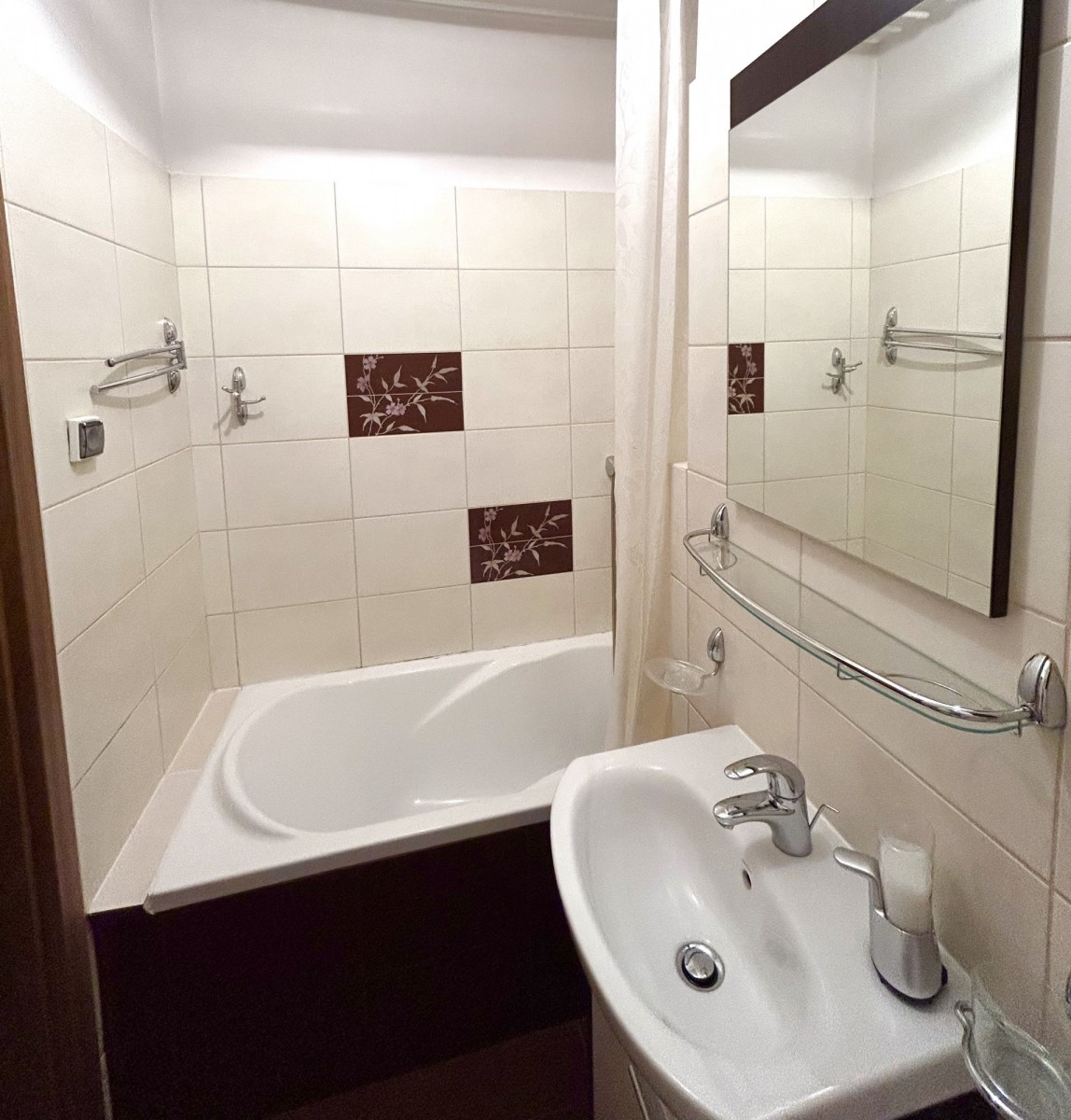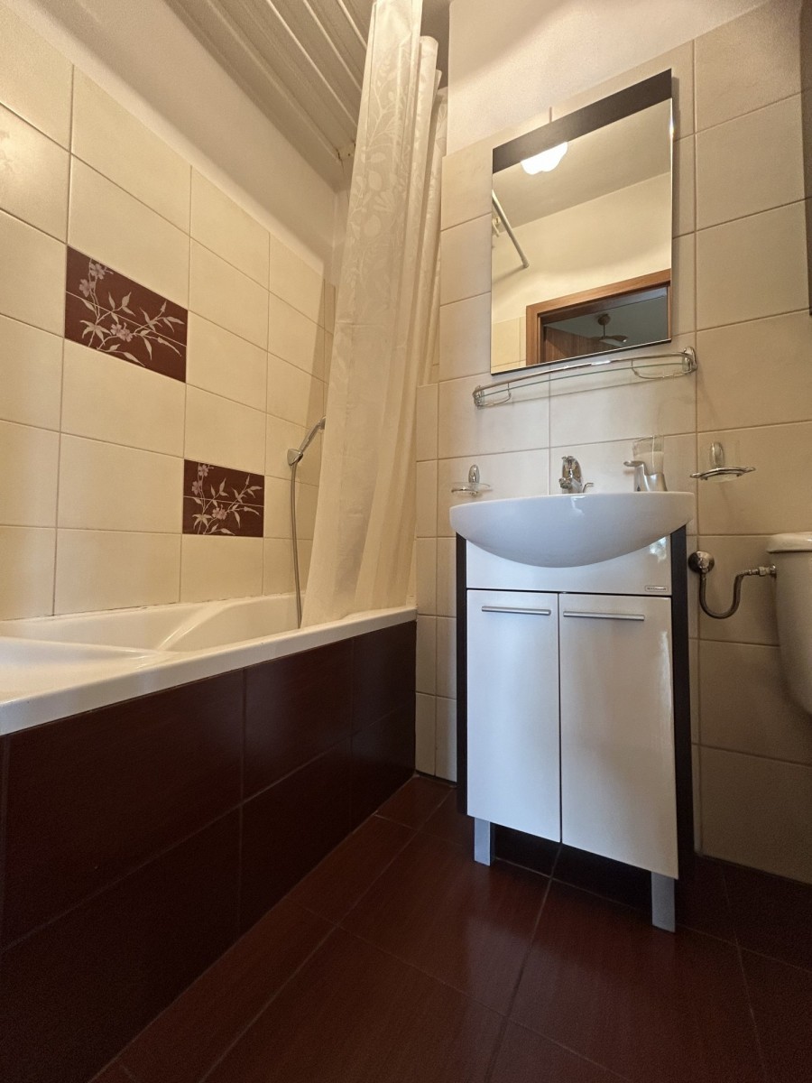 Łazienka z WC – powierzchnia ok 3m2 – z wanną i umywalką.