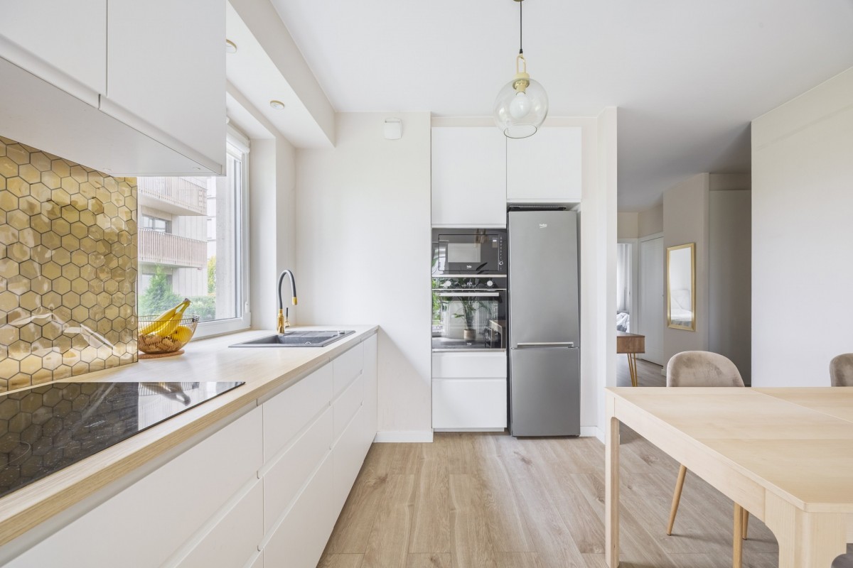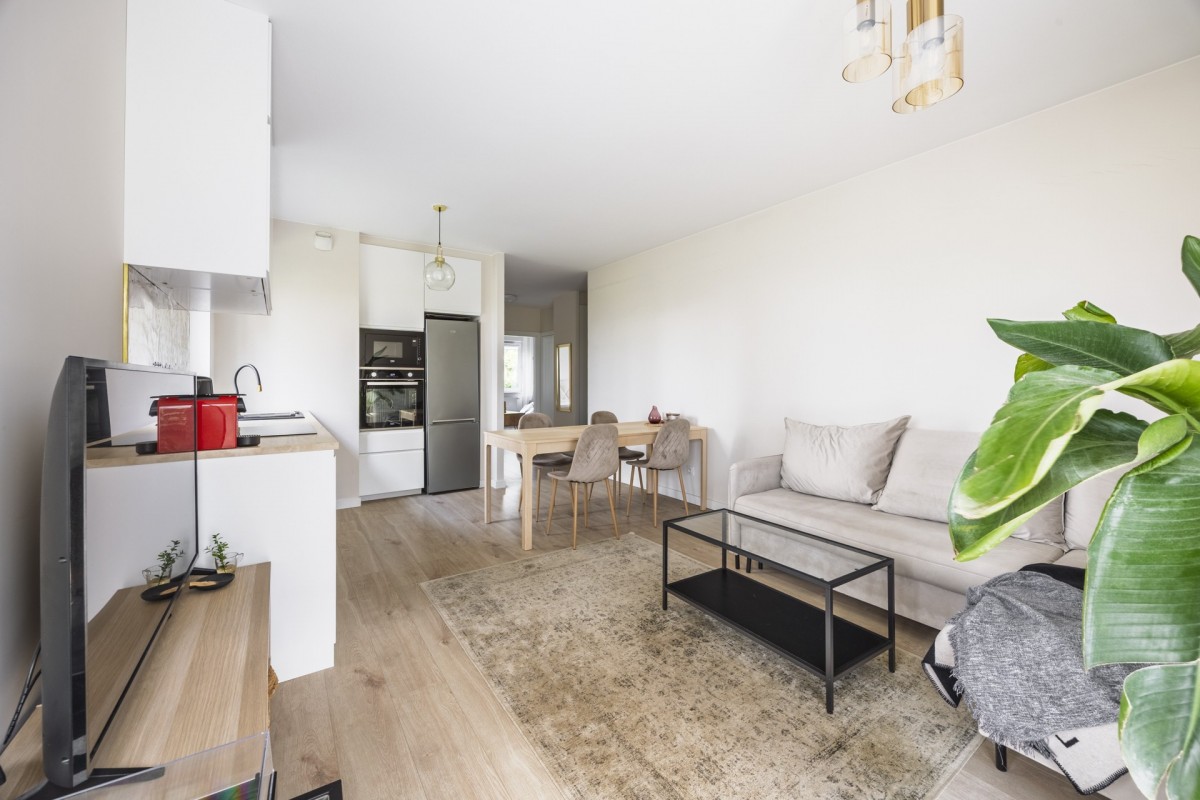 Mieszkanie wykończone w jasnych beżowych, stonowanych kolorach i dbałością o detale. Przedmiotem sprzedaży jest całe wyposażenie – gotowe do zamieszkania.