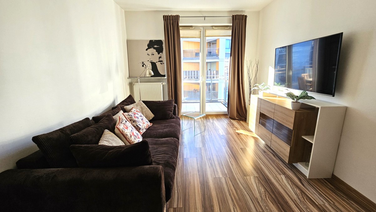 Stylowe, 3-pokojowe mieszkanie o powierzchni 57,2 m², położone na 4. piętrze nowoczesnego apartamentowca z 2010 roku o podwyższonym standardzie.