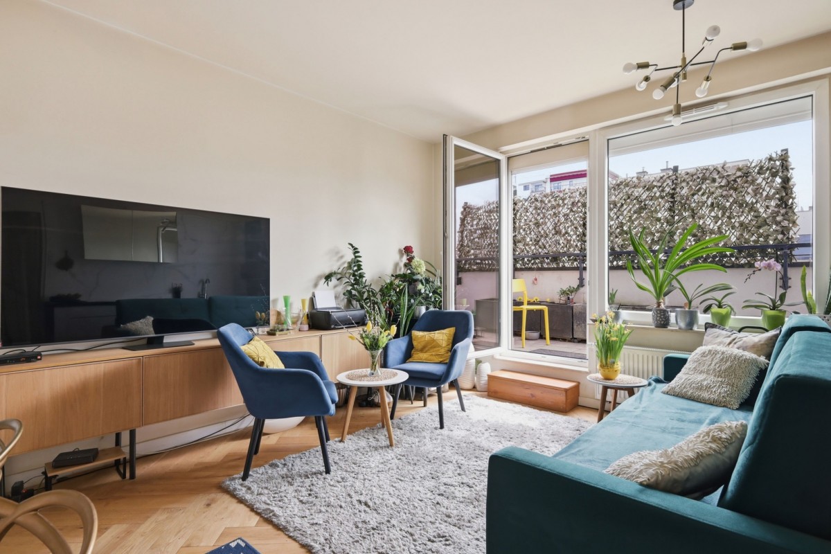 – przestronny salon z aneksem kuchennym i wyjściem na 16 m 2 taras