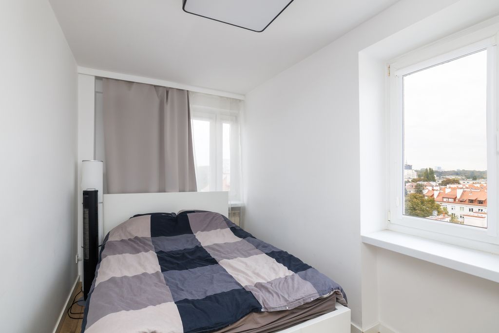For sale: a functional and fully furnished 38 m² apartment located on the 8th (top) floor of a building with an elevator at 27 Chełmska Street in Warsaw. The apartment is located in a well-maintained H-frame building from 1962 and is move-in ready – no additional investment required.