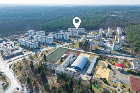 Salon z otwartą kuchnią i jadalnią umeblowany, główna sypialnia umeblowana, druga sypialnia (alternatywnie gabinet, pokój dziecka/nastolatka lub pokój gościnny) umeblowana, w tym zabudowa stała szaf ściennych na wymiar, telewizor na zapytanie najemcy.