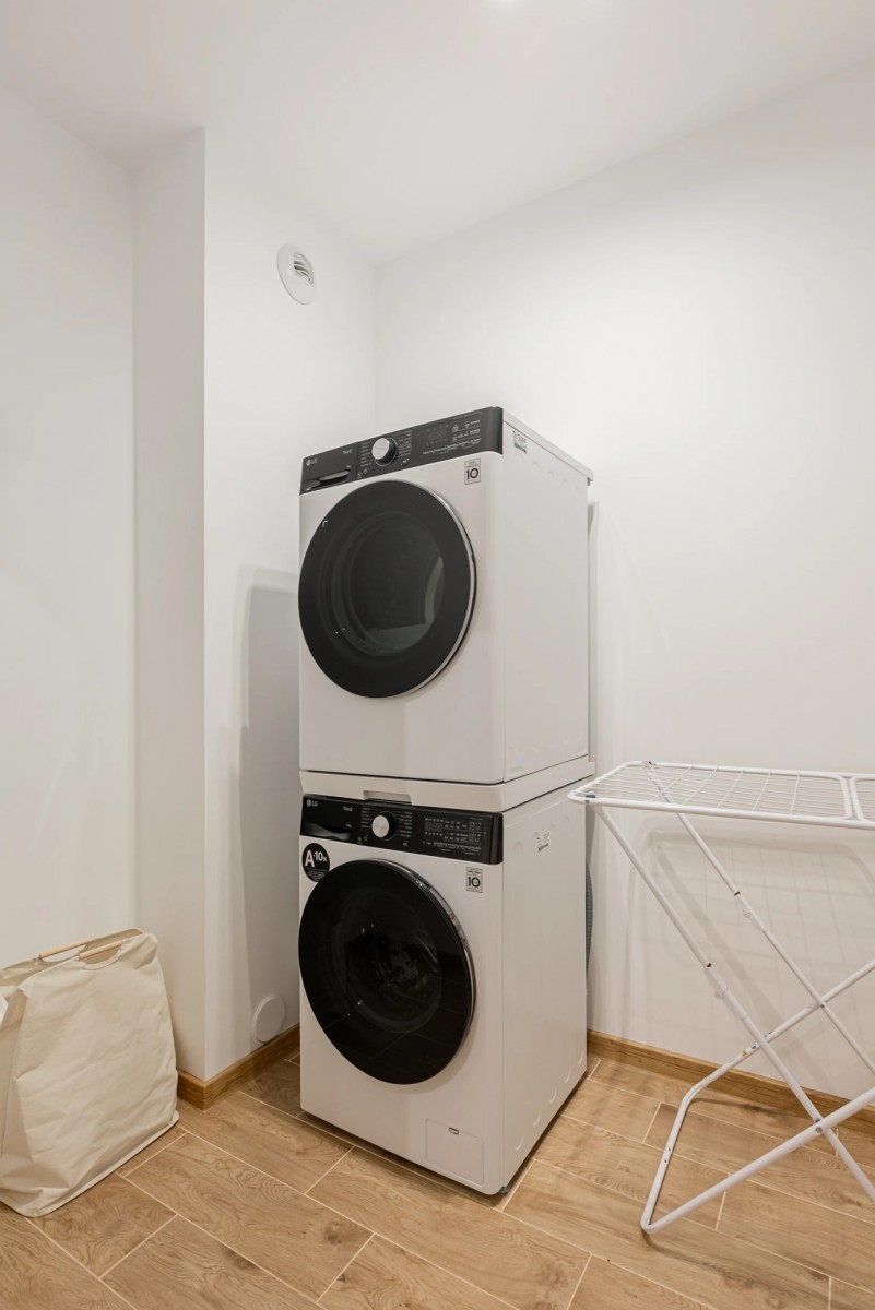 Przemyślany rozkład: salon z aneksem kuchennym, dwie sypialnie, łazienka oraz dodatkowe pomieszczenie, które obecnie pełni funkcję pralni – z możliwością aranżacji na drugą łazienkę lub garderobę.