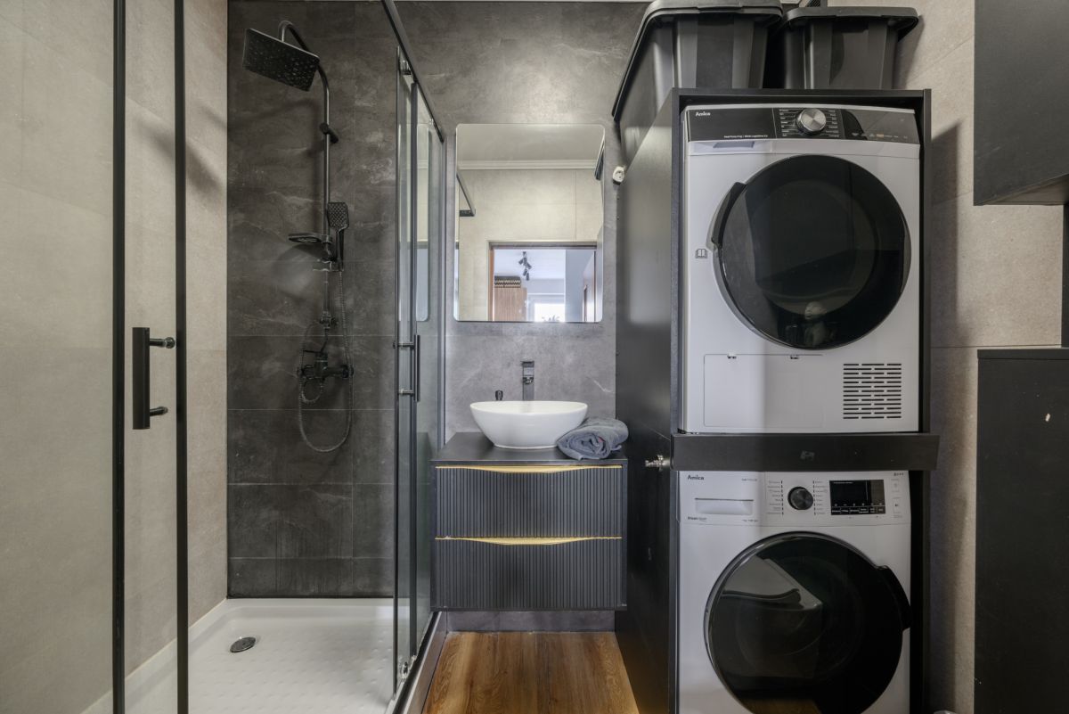 - Łazienka z prysznicem i pralką (z możliwością montażu wanny) – 3,6 m²