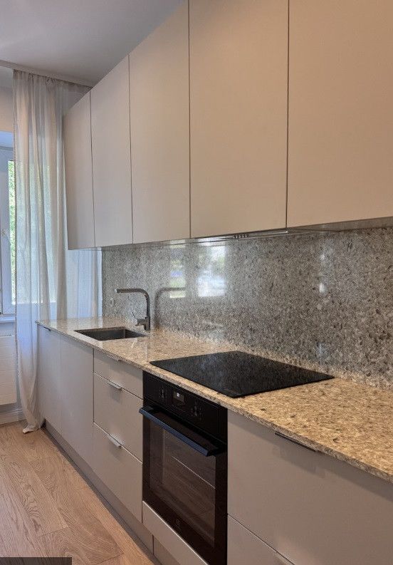 Starannie zaprojektowana przestrzeń, z dużymi oknami dają poczucie większej powierzchni. Mieszkanie zostało wykończone w bardzo wysokim standardzie, z dbałością o każdy detal. Na podłogach znajduje się dąb naturalny, a w łazience użyto eleganckich płytek ceramicznych. Blat kuchenny wykonany jest z konglomeratu kwarcowego, który doskonale łączy estetykę z funkcjonalnością. Sprzęt AGD w kuchni pochodzi od renomowanych marek, takich jak Bosch, Siemens, Electrolux i Haier, co zapewnia niezawodność i komfort użytkowania.