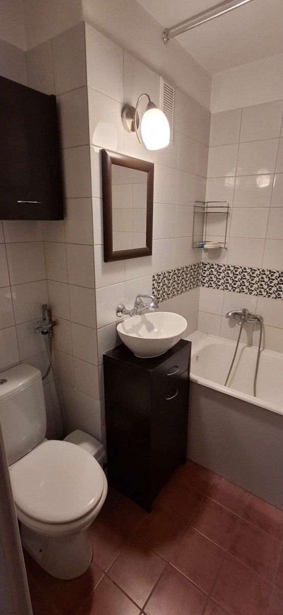 W drugiej, zachodniej, części mieszkania znajdują się dwie sypialnie oraz łazienka z toaletą (niedawno remontowana, co widać na zdjęciach).