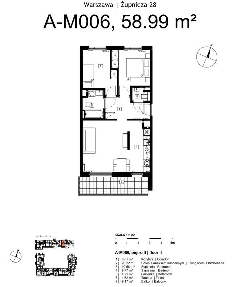 EU – użytkową (kWh/m2*rok): 50.77; EK – końcową (kWh/m2*rok): 78.48; EP – nieodnawialną energię pierwotną (kWh/m2*rok): 67.51; EC02 – Wielkość emisji CO2 (t C02/m2*rok): 0.03; UOZE – Udział odnawialnych źródeł energii w zapotrzebowaniu na energię końcową [%]: 0.00; The 58.99 sq. meter apartment is located in Warsaw’s Kamionek – at ul. Żupnicza 28, in the Praga-Południe district. It is a functional, 3-room, two-sided apartment with a spacious balcony of almost 10 m² . The premises have been finished to a turnkey standard, are partially furnished and ready to move in immediately.