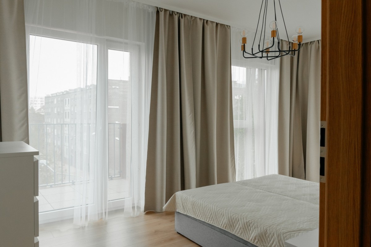 Sypialnia 1 [15,5 m2] podwójne łóżko, komody, lampa + balnon