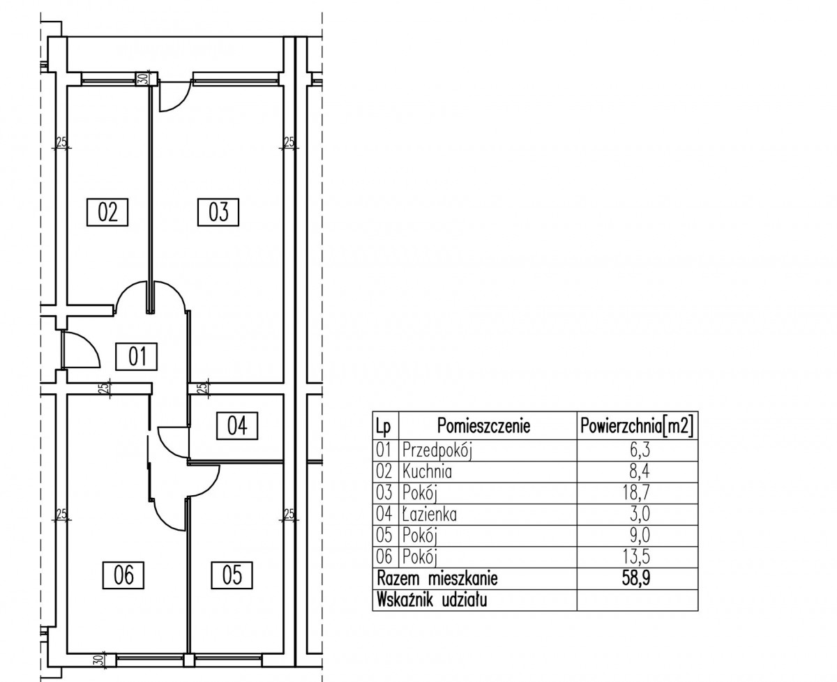 Powierzchnia mieszkania to 58,9 m2 + zabudowana loggia około 3 m2
