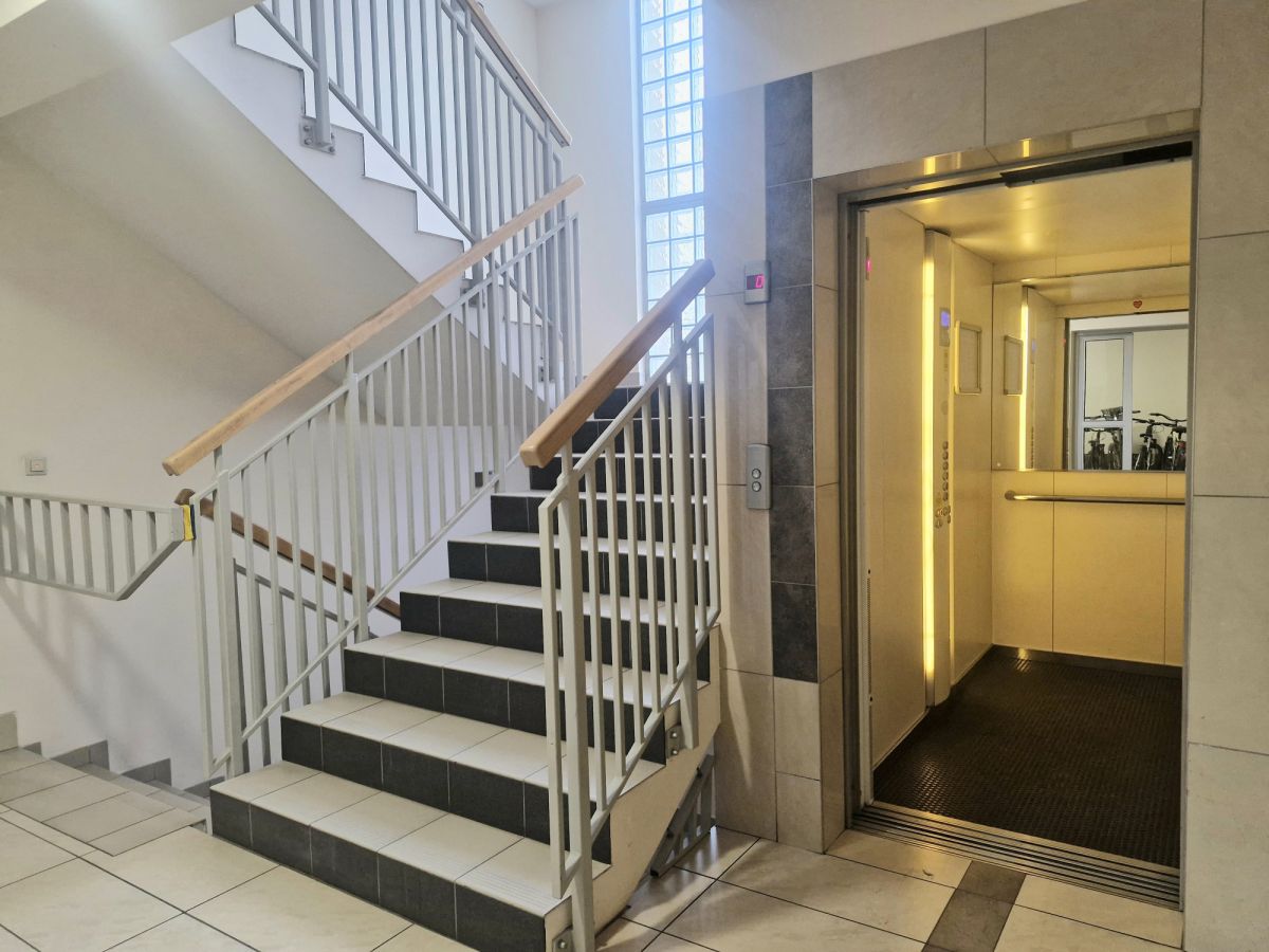 Budynek jest nowoczesny i zadbany i wyposażony w windę, która zjeżdża również bezpośrednio do garażu. Tuż obok garażu znajduje się przynależna do mieszkania, obszerna komórka lokatorska, która pomieści nie tylko nie używane na co dzień przedmioty, ale też rowery czy motocykl.
