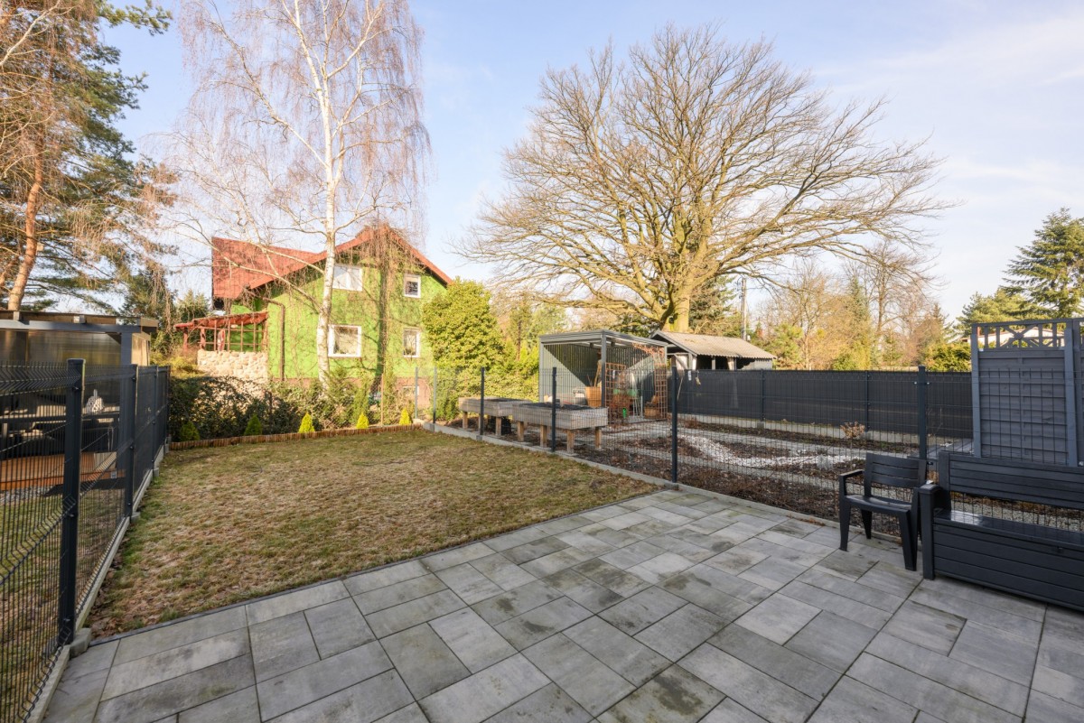 Do segmentu przynależy prywatny ogród o powierzchni ok. 80 m² – idealna przestrzeń wyposażona w meble do wypoczynku. Ogromnym atutem są również dwa miejsca parkingowe na podjeździe, gwarantujące wygodę codziennego użytkowania bez konieczności szukania miejsca postojowego.