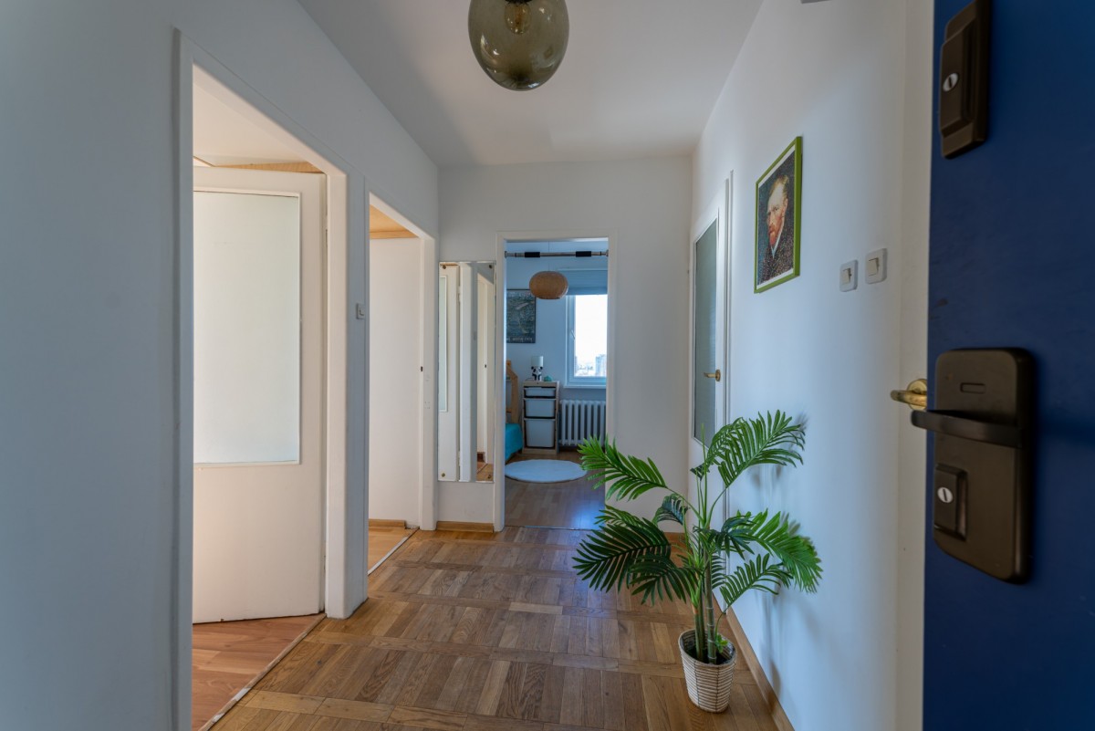 Mieszkanie znajduje się na 9. piętrze (przedostatnim), co zapewnia niesamowity, daleki widok oraz piękne zachody słońca. Dzięki dwustronnemu układowi i ekspozycji zachodniej oraz południowej – wnętrza są świetnie doświetlone i dają prywatność bez zaglądania sąsiadów w okna.