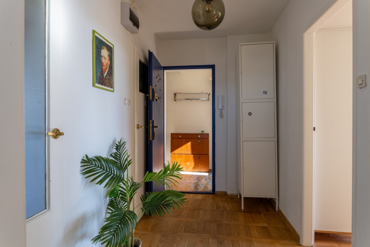 Duży atut mieszkania to zamykany przedsionek z oknem, który może służyć jako garderoba na okrycia wierzchnie oraz buty, miejsce na rowery, wózek dziecięcy lub dodatkową przestrzeń do przechowywania.