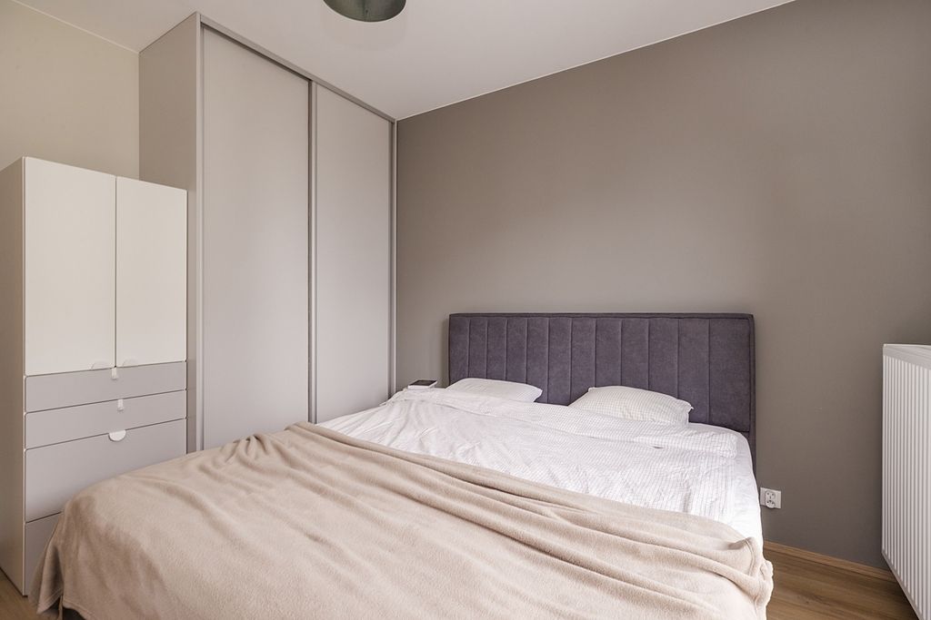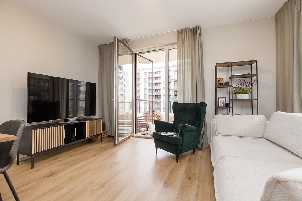 Mieszkanie, zamieszkane zaledwie przez dwa lata, jest praktycznie nowe. Jest wyjątkowo przestronne i komfortowe, a każdy metr kwadratowy został tu przemyślany i w pełni wykorzystany. Wnętrze, urządzone w ponadczasowym, minimalistycznym stylu, jest w pełni wyposażone.