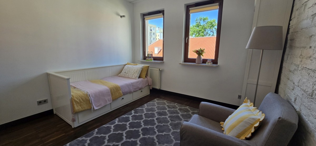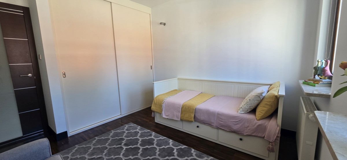 Druga sypialnia – pojedyncze łóżko, przestronna szafa w zabudowie, klimatyzacja
