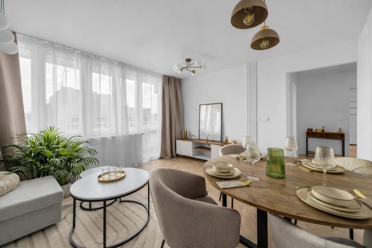 Dzięki przemyślanemu układowi mieszkanie jest bardzo ustawne i komfortowe zarówno do życia, jak i pod wynajem na pokoje.